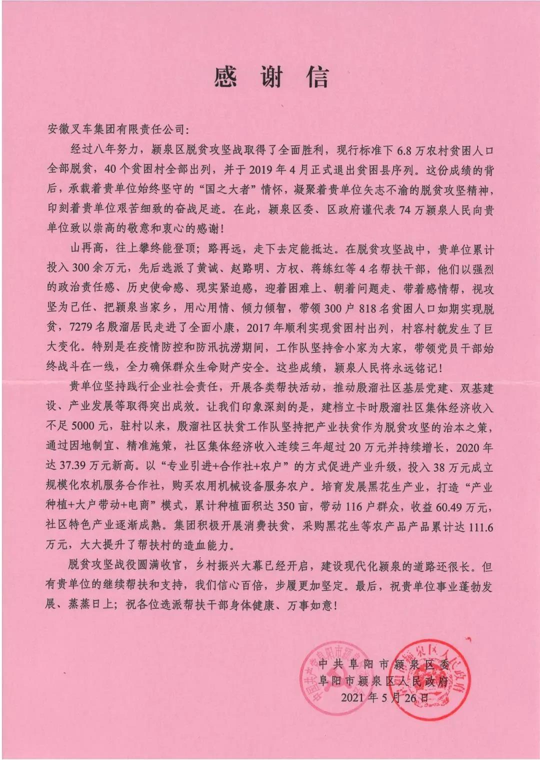 據(jù)悉,在殷溜社區(qū)八年脫貧攻堅戰(zhàn)期間,叉車集團以高度的政治責(zé)任感和歷史使命感,迎著困難上、朝著問題走、帶著感情幫,勝利實現(xiàn)殷溜社區(qū)貧困村脫貧摘帽出列,818名建檔立卡貧困人口全部脫貧,7279名殷溜居民走進了全面小康。在此期間,該公司主要領(lǐng)導(dǎo)多次深入幫扶實地,開展調(diào)研、走訪座談等活動,研究解決實際問題;駐村工作隊堅持駐村入戶,宣傳、組織落實幫扶政策;黨員干部開展結(jié)對幫扶,定期入戶走訪。公司先后累計投入300余萬元,通過開展“黑花生種植”、成立“農(nóng)機合作社”、落地“扶貧車間”等方式,幫助貧困戶發(fā)展產(chǎn)業(yè),增加集體經(jīng)濟收入;通過建立“校企實訓(xùn)基地”、“資助貧困生”,幫助貧困戶掌握技能,成才就業(yè),阻斷貧困代際傳遞;通過落實“雙基建設(shè)”,幫助定點幫扶單位改善村容村貌,建設(shè)美好鄉(xiāng)村;通過加強“基層組織建設(shè)”、開展“文化下鄉(xiāng)”,強化黨建引領(lǐng),豐富群眾文化生活,形成鄉(xiāng)風(fēng)文明新風(fēng)尚。通過因地制宜發(fā)展產(chǎn)業(yè),殷溜社區(qū)年集體經(jīng)濟收入由建檔立卡時的不足5000元, 到2020年增長至37.39萬元,為社區(qū)走上鄉(xiāng)村振興道路奠定了良好基礎(chǔ)。