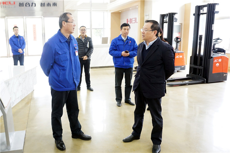 牛弩韜一行走進(jìn)合力展廳,近距離了解了公司產(chǎn)業(yè)布局、發(fā)展歷程、研發(fā)體系、制造體系及營銷網(wǎng)絡(luò)等企業(yè)基本概況。參觀過程中,張德進(jìn)詳細(xì)匯報了企業(yè)近年來的發(fā)展概況及2018年生產(chǎn)經(jīng)營情況,對現(xiàn)階段產(chǎn)銷兩旺的發(fā)展態(tài)勢做了分析和研判,并重點講解了公司在電動、智能產(chǎn)品以及智能制造領(lǐng)域的特色做法和有益嘗試。