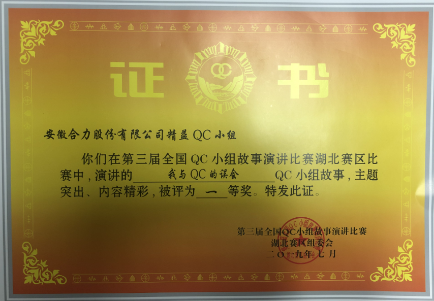 經(jīng)過一整天的角逐,來(lái)自11個(gè)省份的62組選手分享了62個(gè)精彩紛呈的QC故事,合力電動(dòng)分公司精益QC小組的選手畢夏杰分享的“我和QC的誤會(huì)”主題突出、內(nèi)容精彩,榮獲了一等獎(jiǎng)的好成績(jī)。